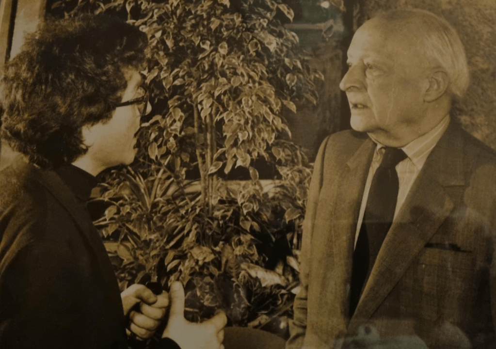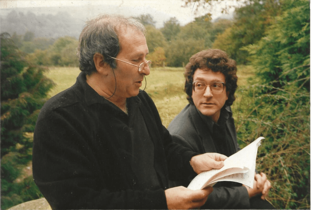 Arnold Wesker and Robert Saxton discussing Caritas at Arnold Wesker’s house in Wales